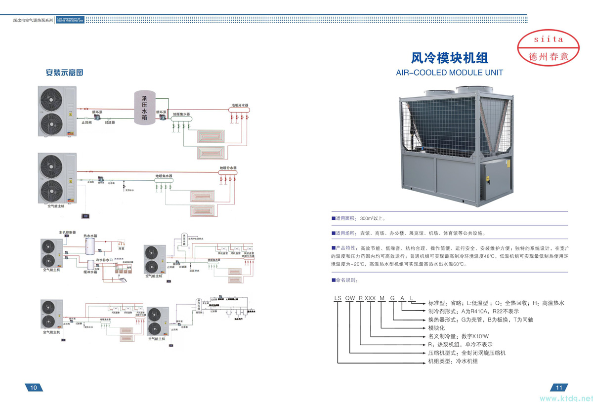 空氣源熱泵機組安裝便捷。重量輕,外型尺寸小,適合任何通風好的地方;